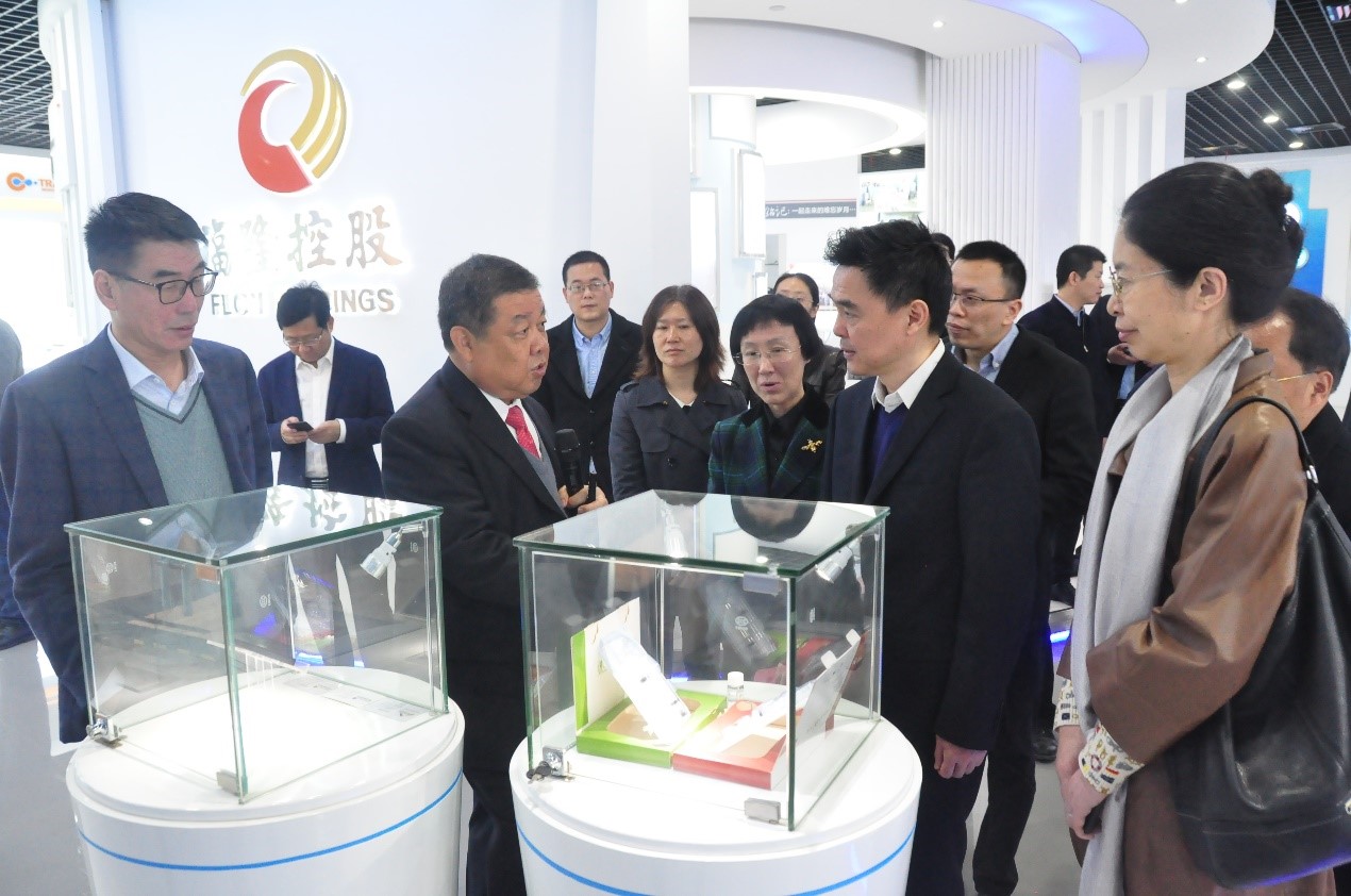 钱福卿董事长陪同王越局长一行参观了集团文化走廊与展厅,并详细介绍了福隆集团三十年的发展历程和目前在医疗器械、环保科技、照明电器、生物材料、金融创投五大产业领域的发展现状及前景,并着重介绍了医疗器械相关产品及项目。