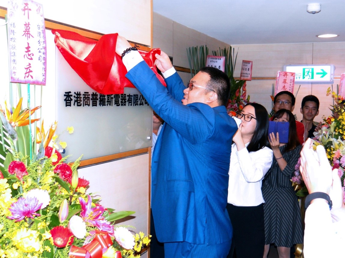 普罗斯电器有限公司台湾分公司于2016年11月1号在台湾新北市举办开幕仪式。钱松总裁亲自与会揭幕及致辞,集团各分公司领导与相关人士前来祝贺。