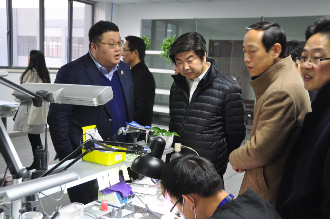 张耀钢副主席一行首先参观了集团文化走廊与展厅,详细了解了福隆集团三十年的发展历程和目前在医疗器械、环保科技、照明电器、生物材料、金融创投五大领域的经营情况,以及旗下各公司的产品特点与科技创新成果,然后认真听取了福隆集团今后长远发展的规划设想。随后张耀钢副主席一行在创英医疗与福隆数齿管理人员的陪同下来到了生产车间,参观了齿科种植体产品与数字义齿的生产流程。